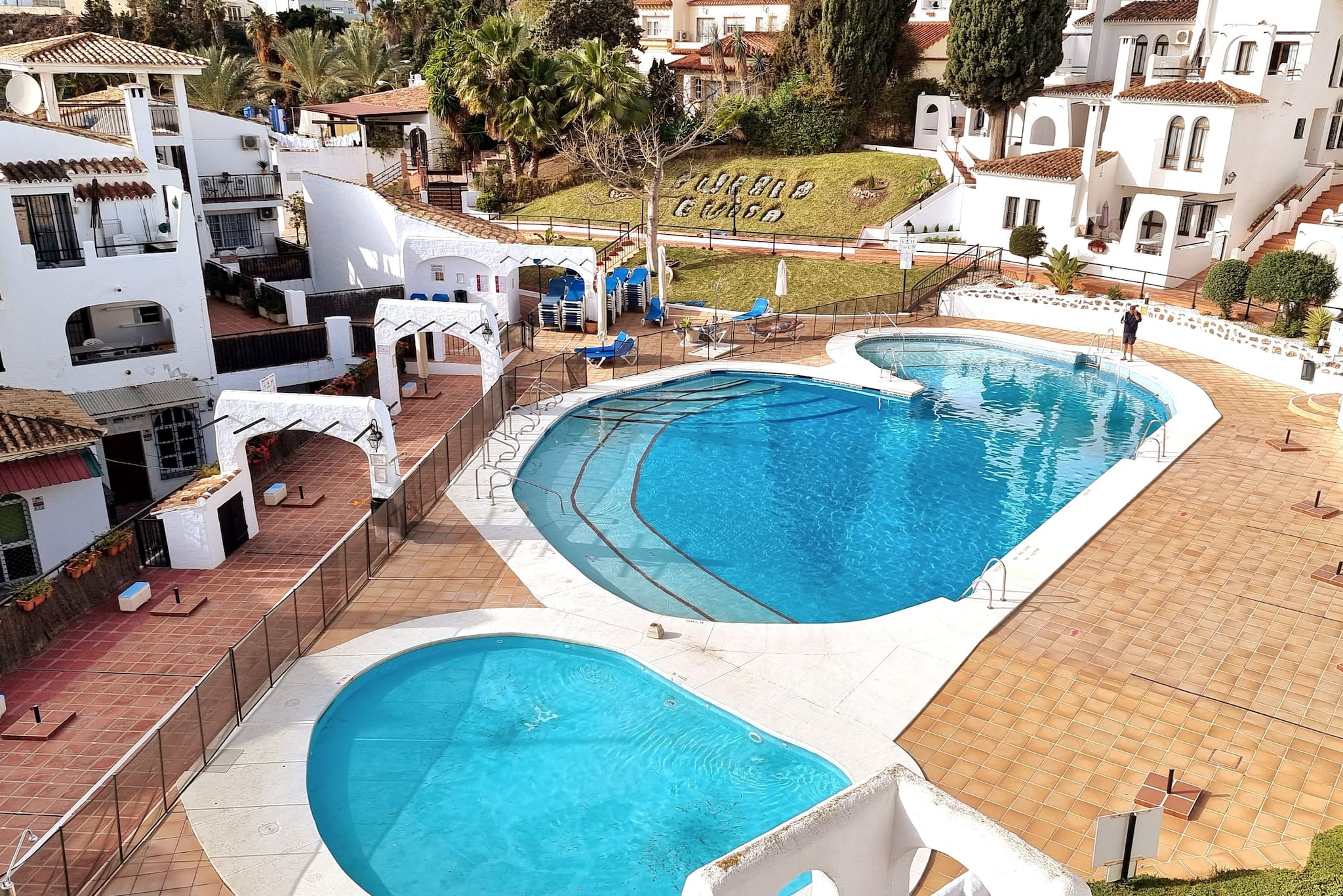 Hay 2 piscinas comunitarias en jardines tropicales cerrados. El complejo está bien mantenido y cuidado.