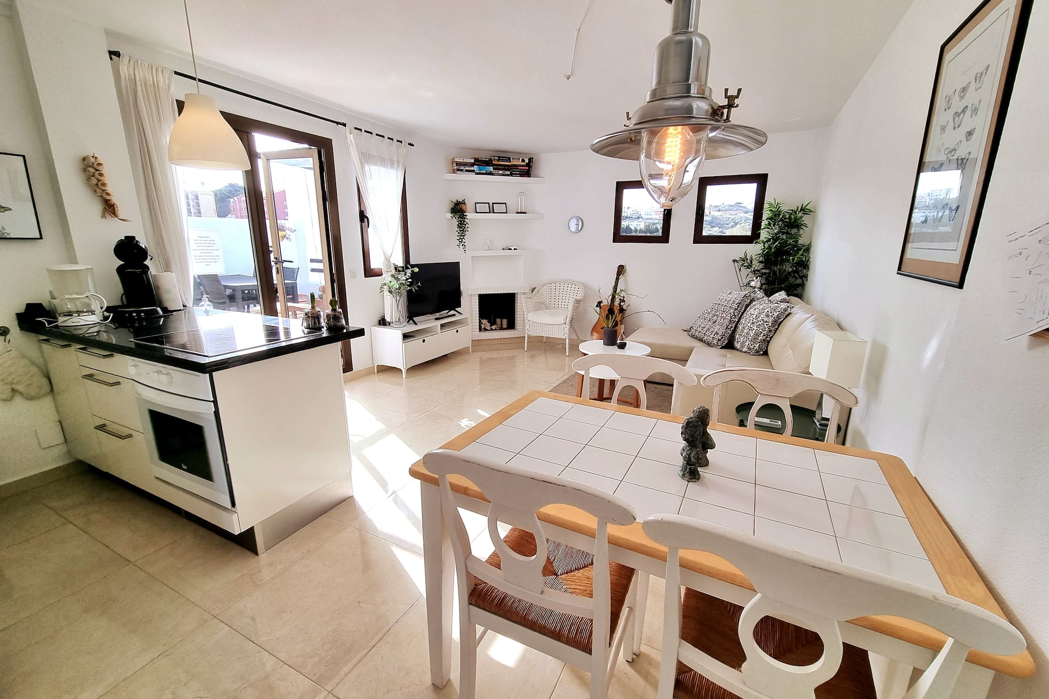 Hermosa y acogedora sala de estar con comedor y pequeña cocina abierta y totalmente equipada.
