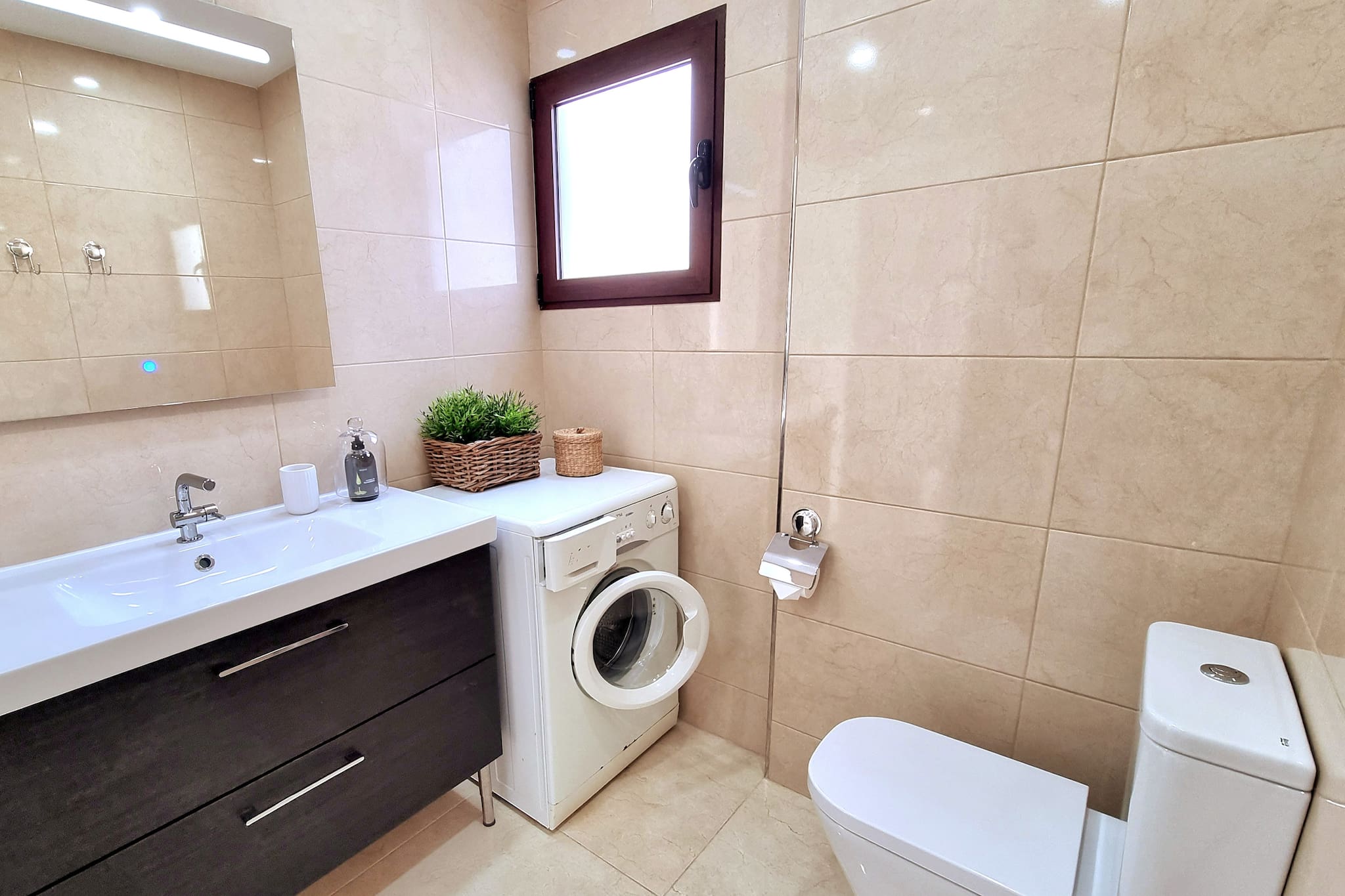 El apartamento cuenta con una cocina totalmente equipada con lavavajillas. Lavadora y secadora también en el apartamento.