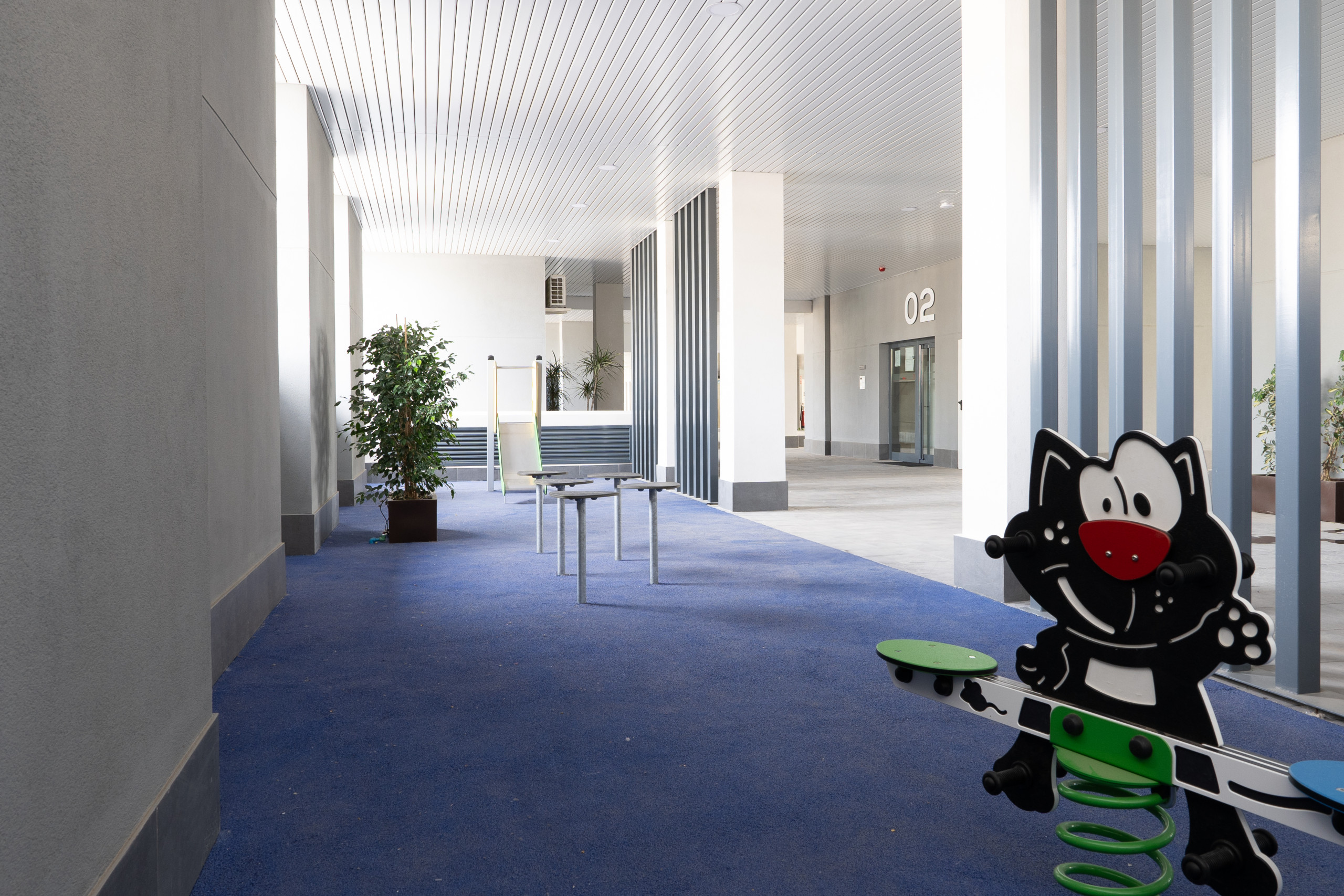 Los residentes pueden disfrutar de una gran piscina comunitaria, piscina infantil, equipamiento exterior para hacer ejercicio y una pequeña zona de juegos para niños. También incluye parking privado subterráneo para tu comodidad.