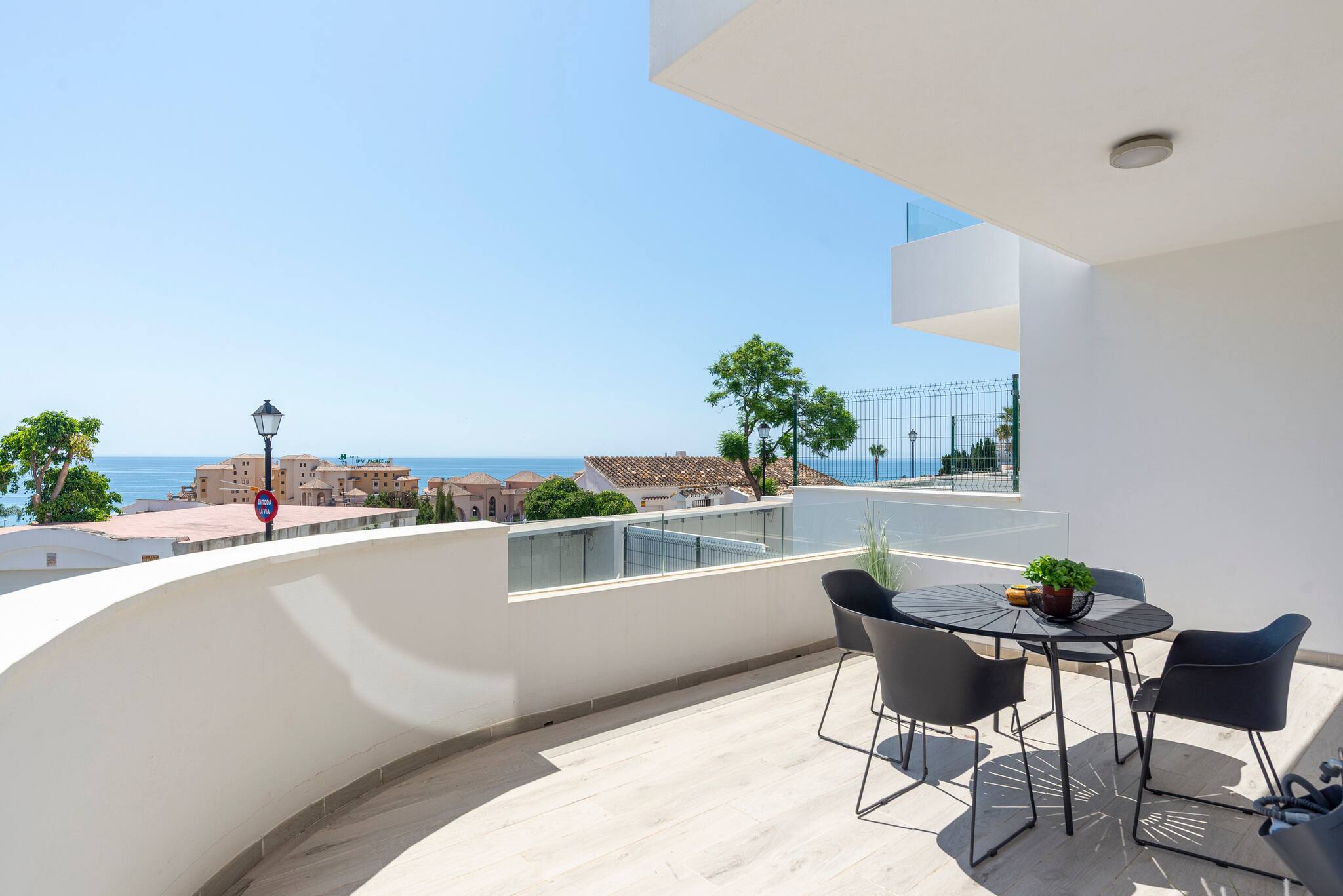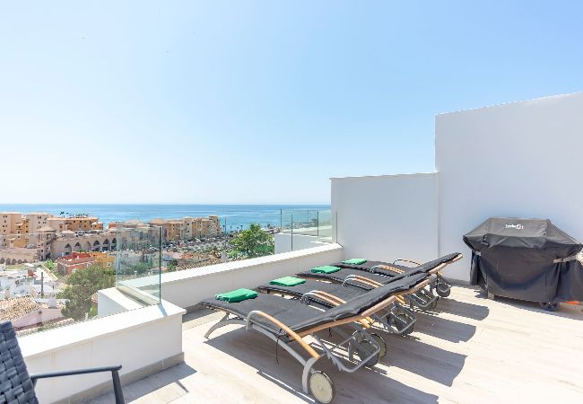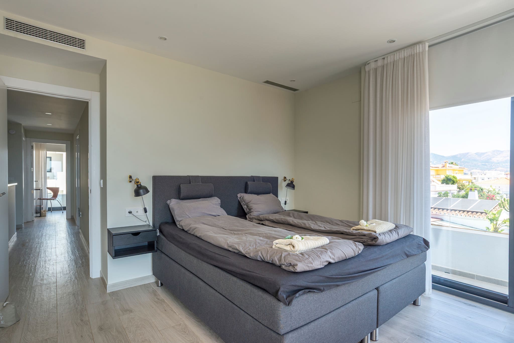 Si subes a la última planta, encontrarás una gran terraza privada en la azotea con zona de comedor, muebles de salón, tumbonas y barbacoa. Desde aquí tendrás una vista fantástica de la playa y las montañas, y la playa está a solo 5 minutos caminando.