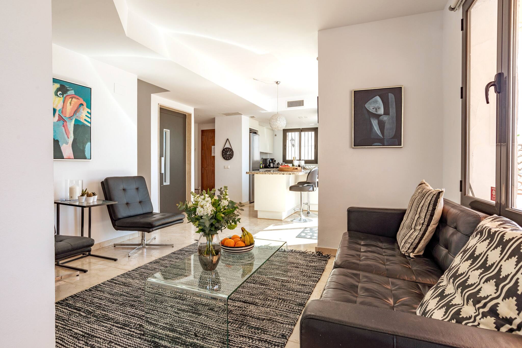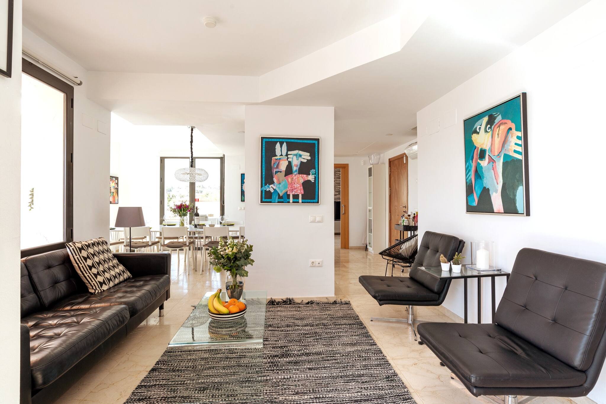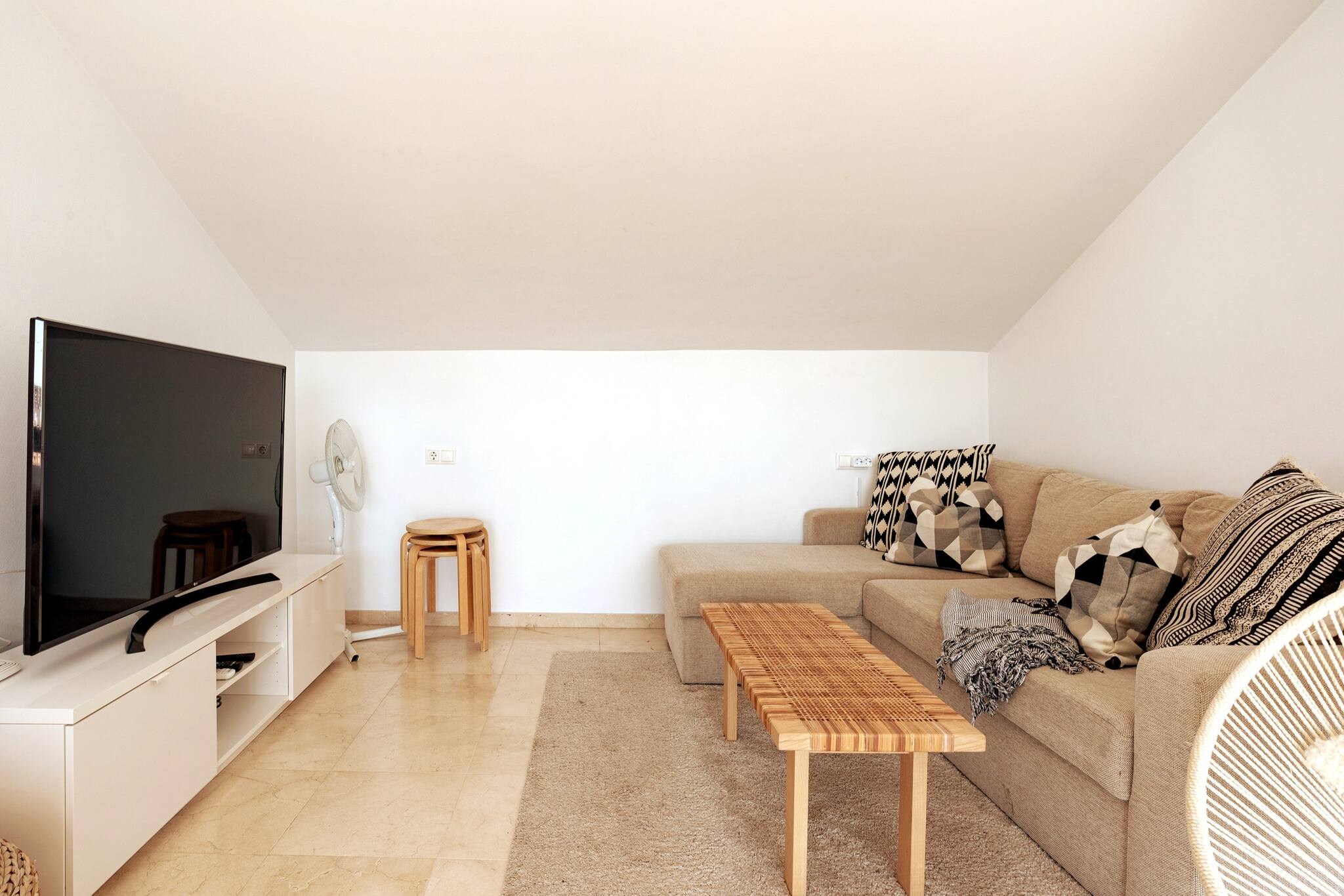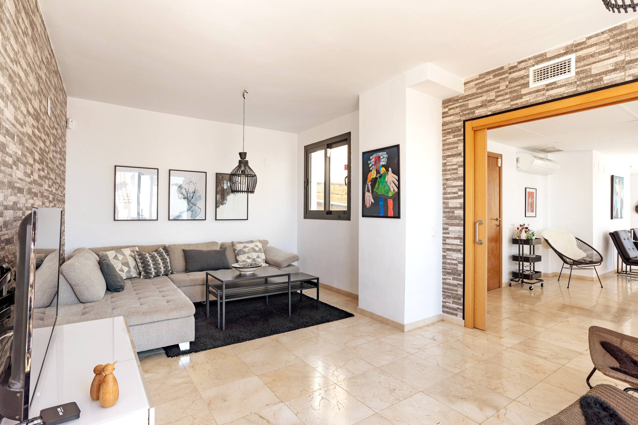 Esta casa adosada de 3 plantas está amueblada en un estilo escandinavo moderno. Urb. La Roca está a solo 400 metros de la playa, restaurantes y supermercados. La casa tiene su propia piscina de chapoteo que se puede calentar. También hay piscina comunitaria y, por supuesto, Wifi.
