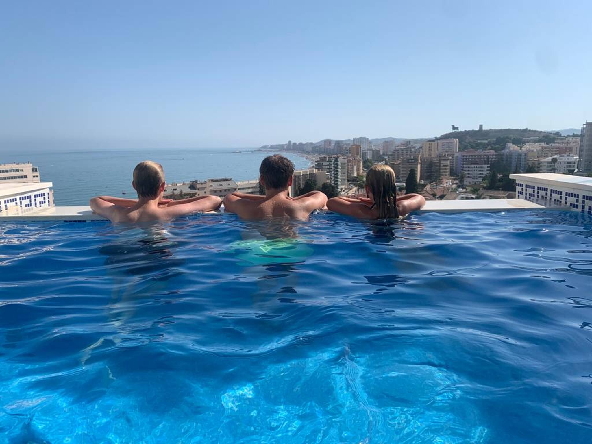 En la planta baja hay una sala de estar muy grande con área de comedor para todos, también aquí tiene aire acondicionado, tanto frío como caliente. Puertas correderas hacia la sala de TV, que cuenta con canales de televisión daneses, suecos, noruegos e ingleses. Cocina abierta totalmente equipada. Hay puertas a la terraza desde cada habitación en este piso, por lo que es muy luminoso y hermoso. Muy buen espacio en la terraza con comedor, para que puedan sentarse y divertirse juntos. Aquí, también hay algunas tumbonas, y si subes unos escalones, tienes tu propia piscina privada, que se puede calentar, con impresionantes vistas del Mediterráneo y Fuengirola.