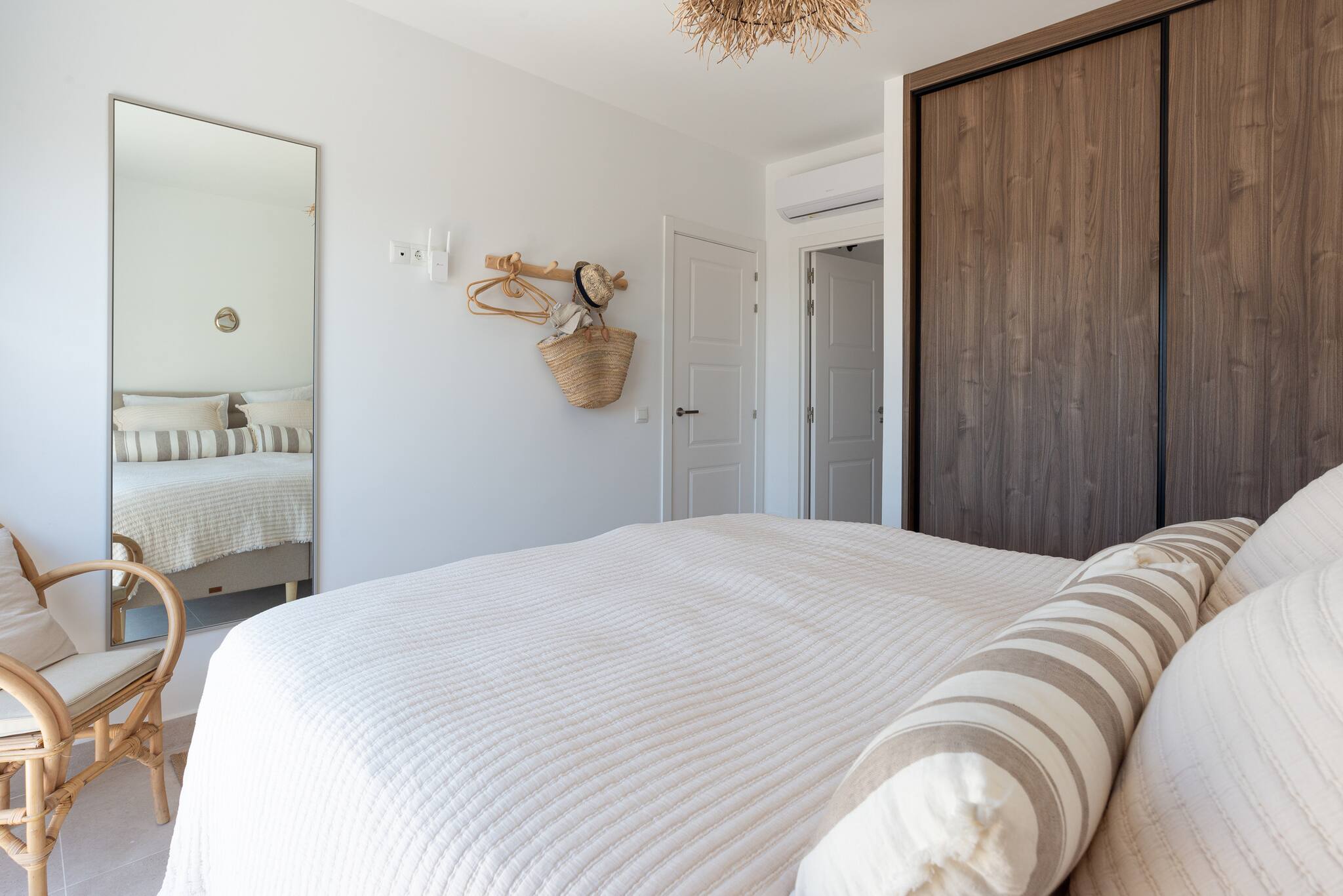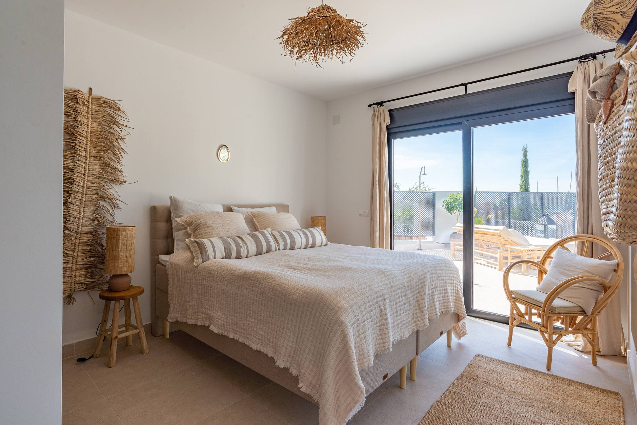 Hay grandes secciones de ventanas en la casa que puede abrir y salir directamente a la terraza y disfrutar del sol. También hay persianas eléctricas en toda la villa para que pueda bloquear el sol. Todas las habitaciones tienen aire acondicionado con aire frío y caliente.