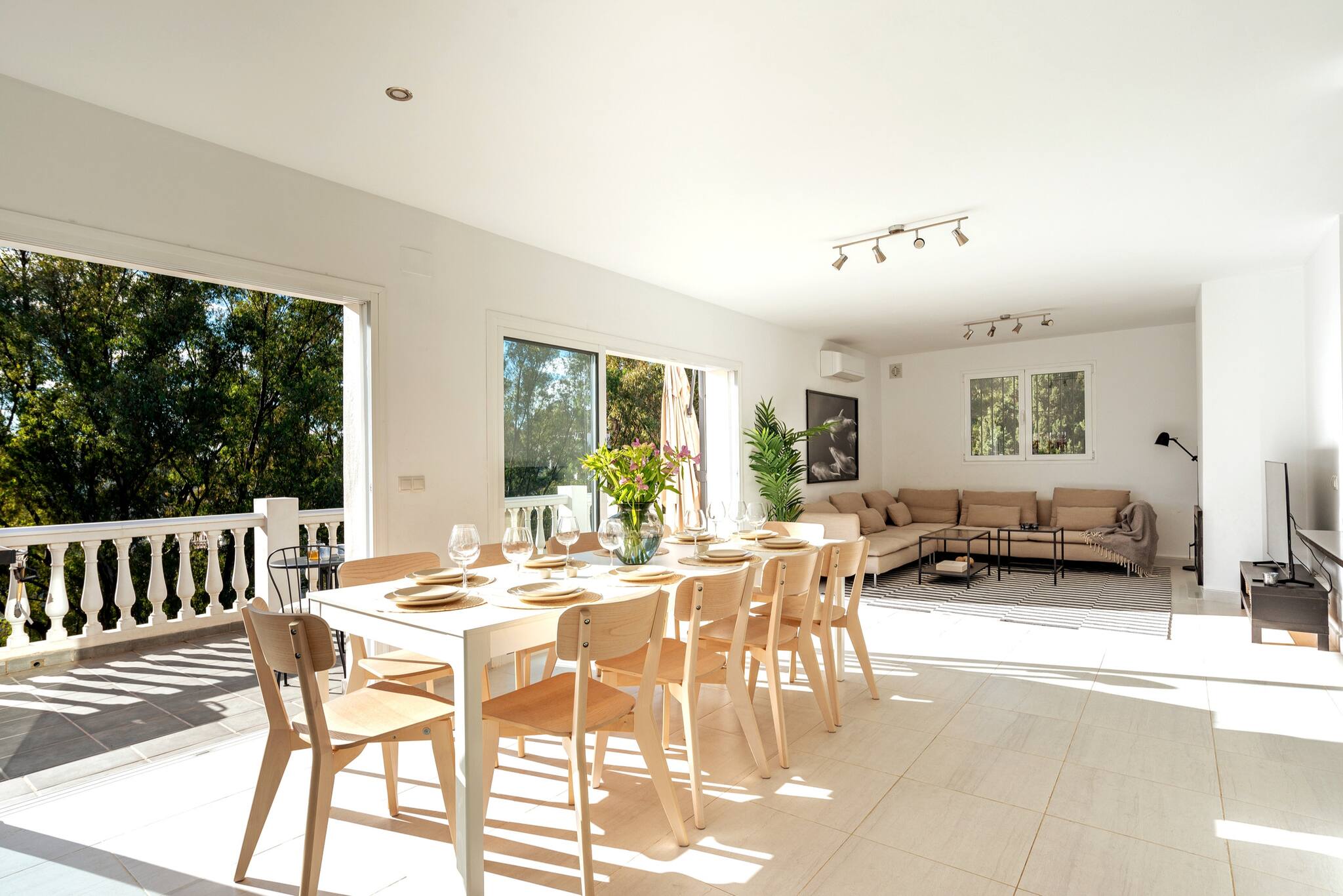 Una zona tranquila con residentes permanentes en las villas de los alrededores. La playa más cercana está a 10 minutos a pie de la casa y a 10 minutos a pie del supermercado y restaurantes más cercanos. El pueblo de La Cala, que es el pueblo más cercano, tiene de todo, restaurantes, bares, supermercados, etc. Tardarás unos 5 minutos en llegar a La Cala.