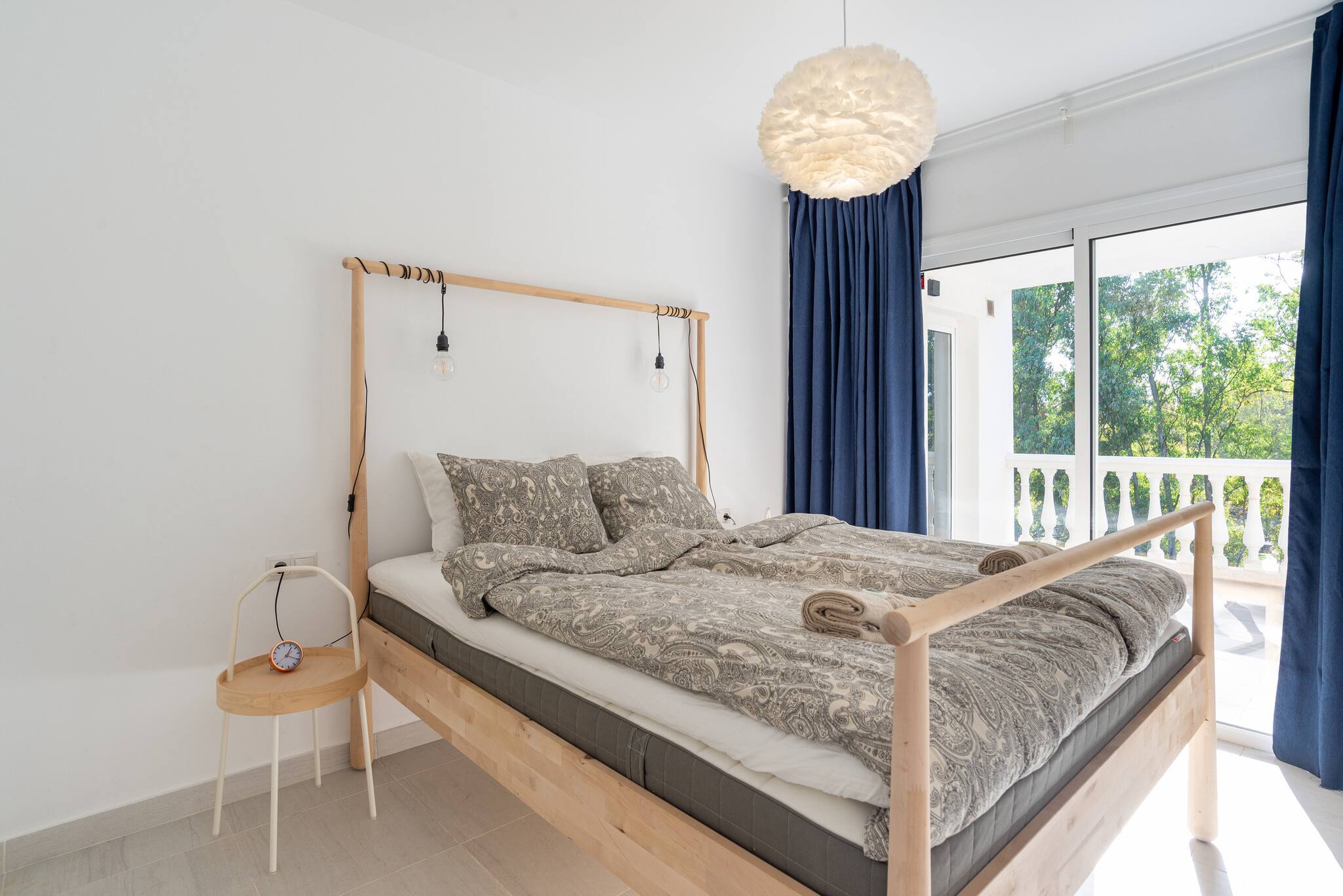 El segundo dormitorio tiene una cama doble. El tercer dormitorio tiene una cama de matrimonio y en esta habitación también dispones de 2 camas individuales supletorias. Así que en esta casa hay espacio para 8 personas.