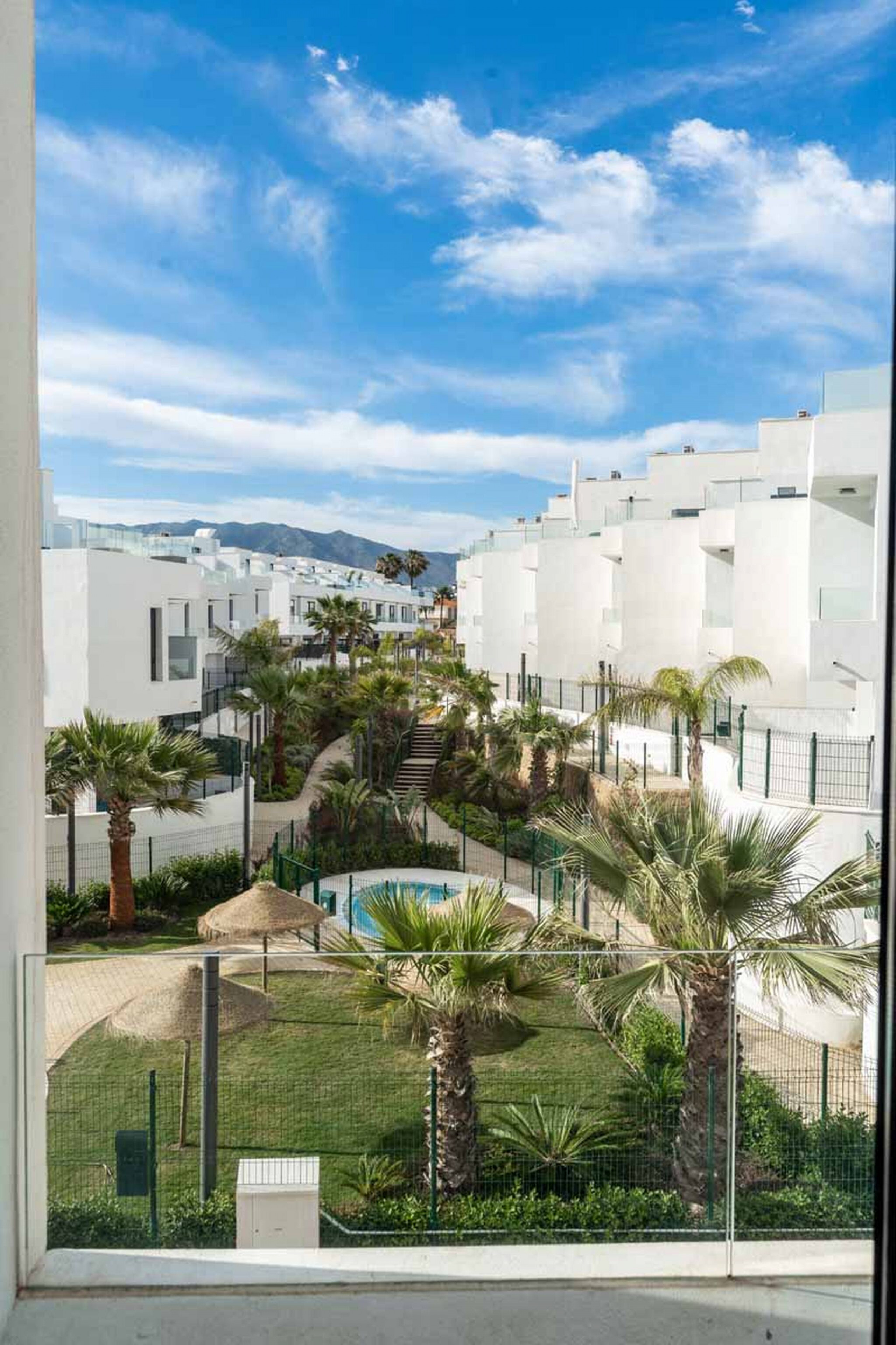 Bebyggelsen ligger kun 8 minutters gang fra stranden og promenaden, med lækre lokale strandbarer. Der er også busstop og togstation lige rundt om hjørnet, som giver nem adgang til Fuengirola eller Málaga.