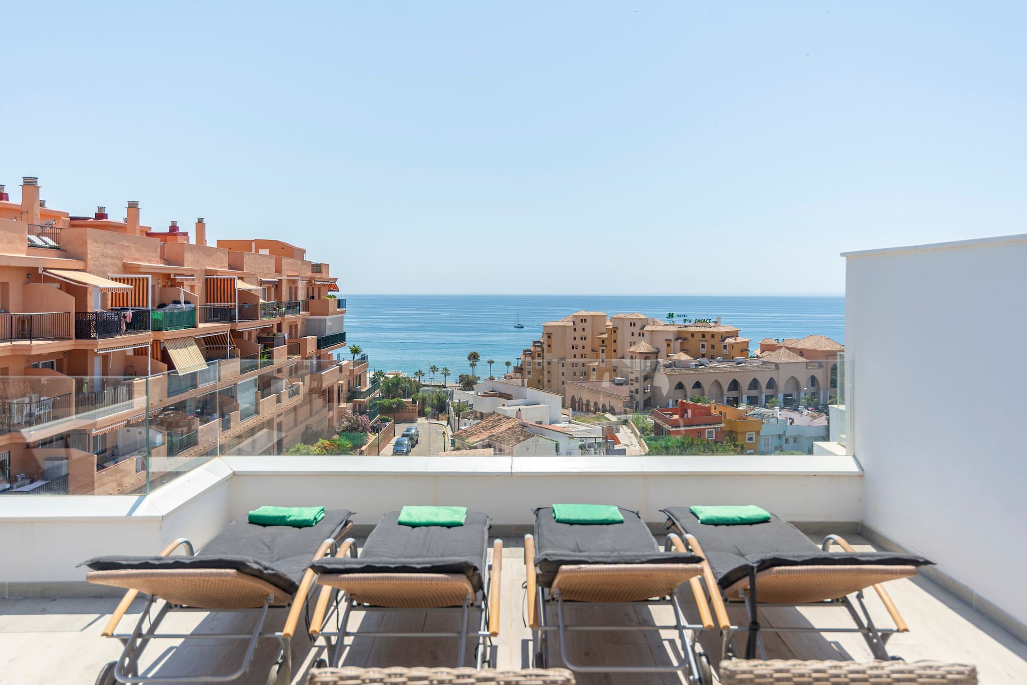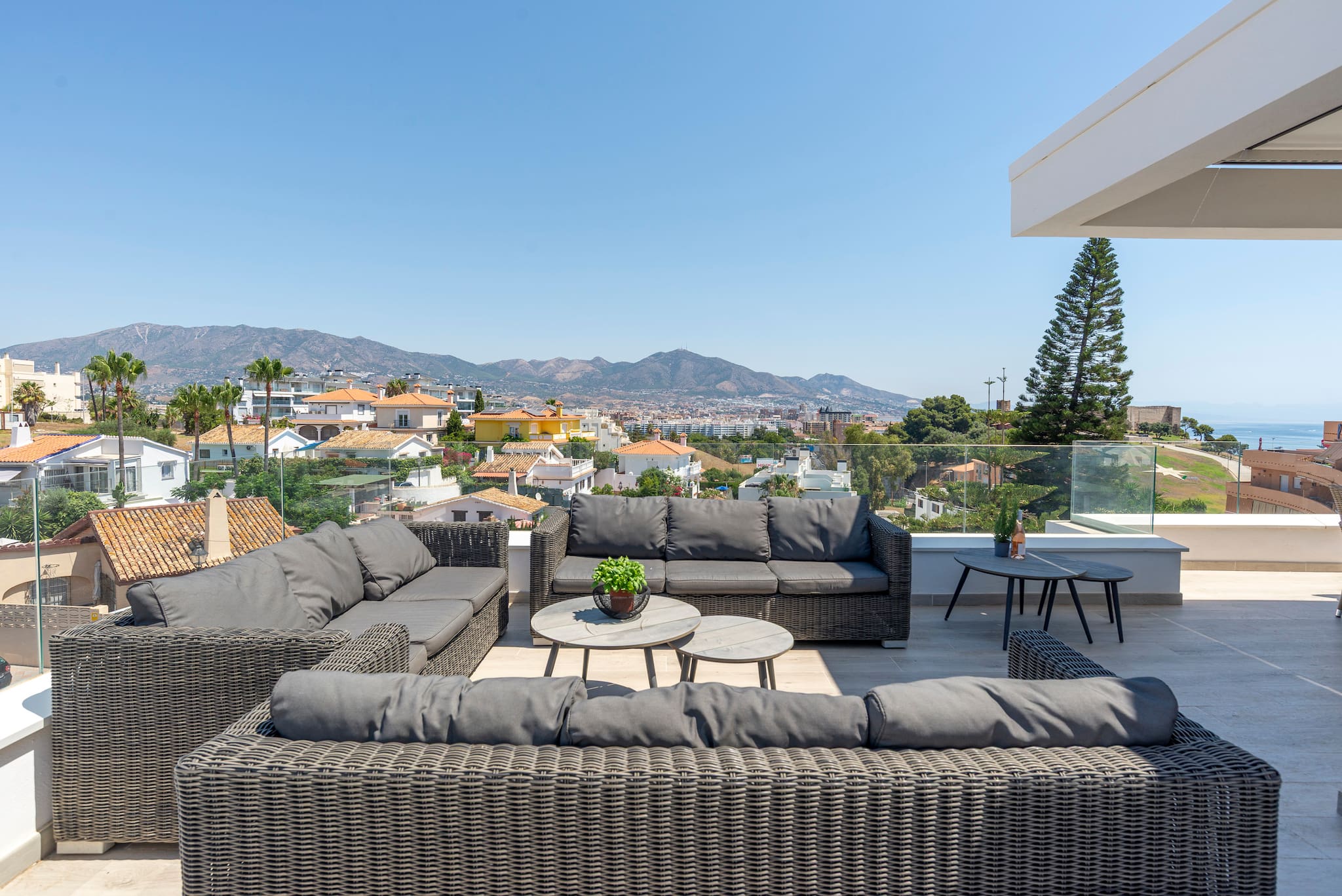 Nyt rækkehus 5 minutters gang fra stranden og tæt på byen Fuengirola. Der er 3 soveværelser og 2 badeværelser. Stor stue med åbent køkken. Fantastisk udsigt over Middelhavet. Fælles pool samt børne pool, motions rum og sauna.