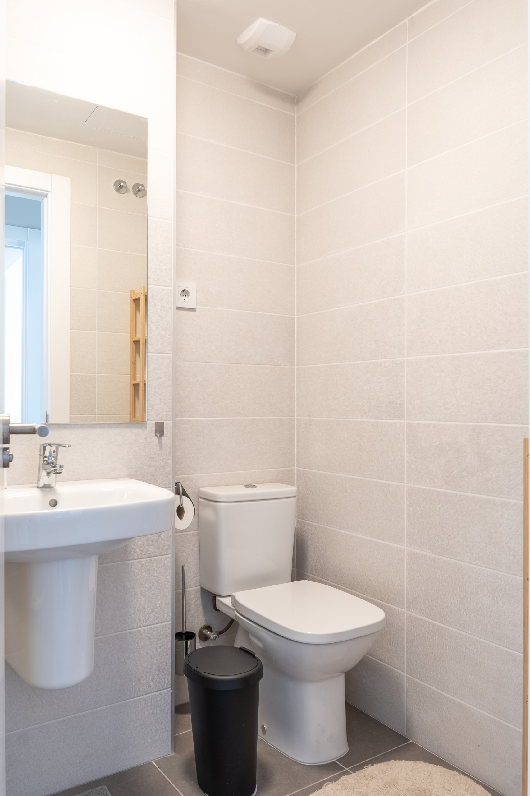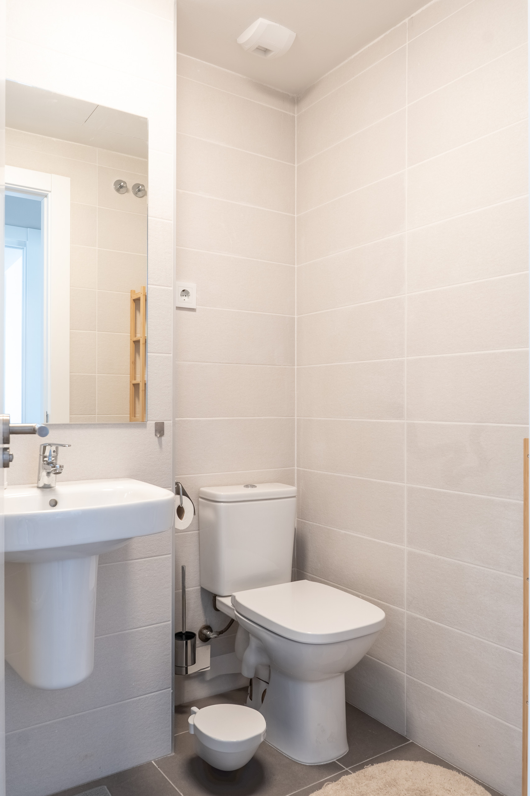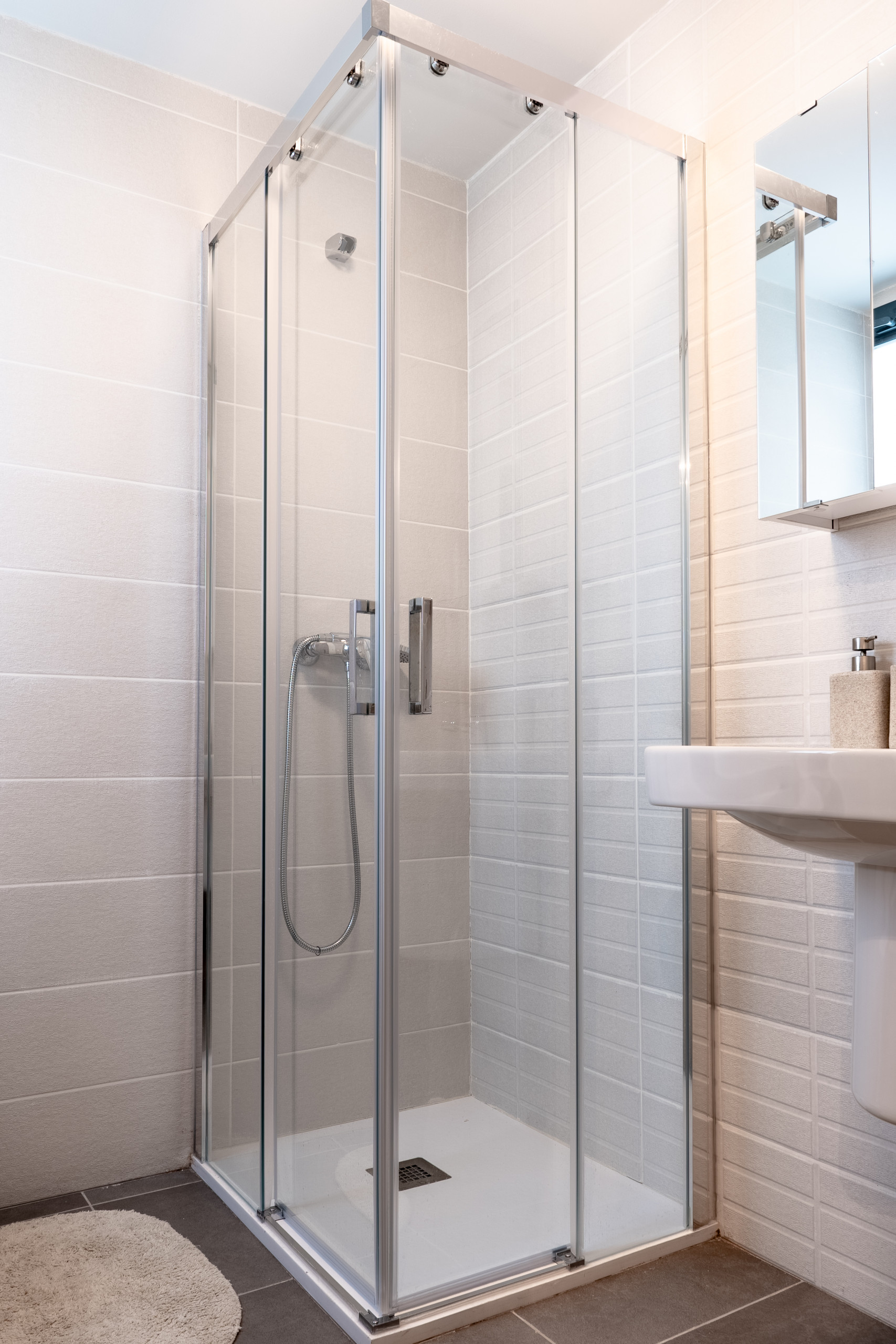Denne nye lejlighed ligger på første sal og har 3 soveværelser, alle med enkeltsenge. Der er 2 badeværelser: et med bruser og et med badekar/bruser.