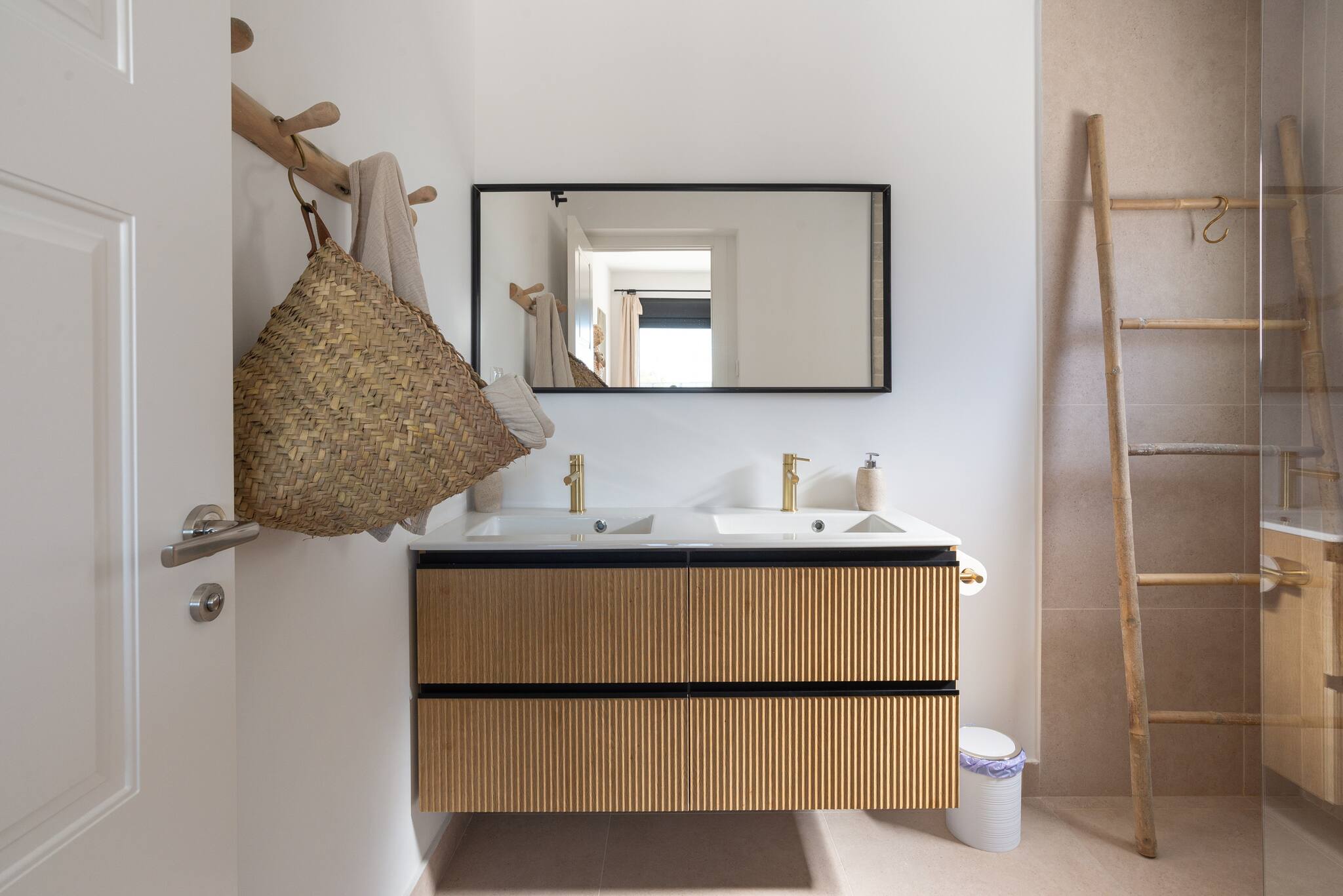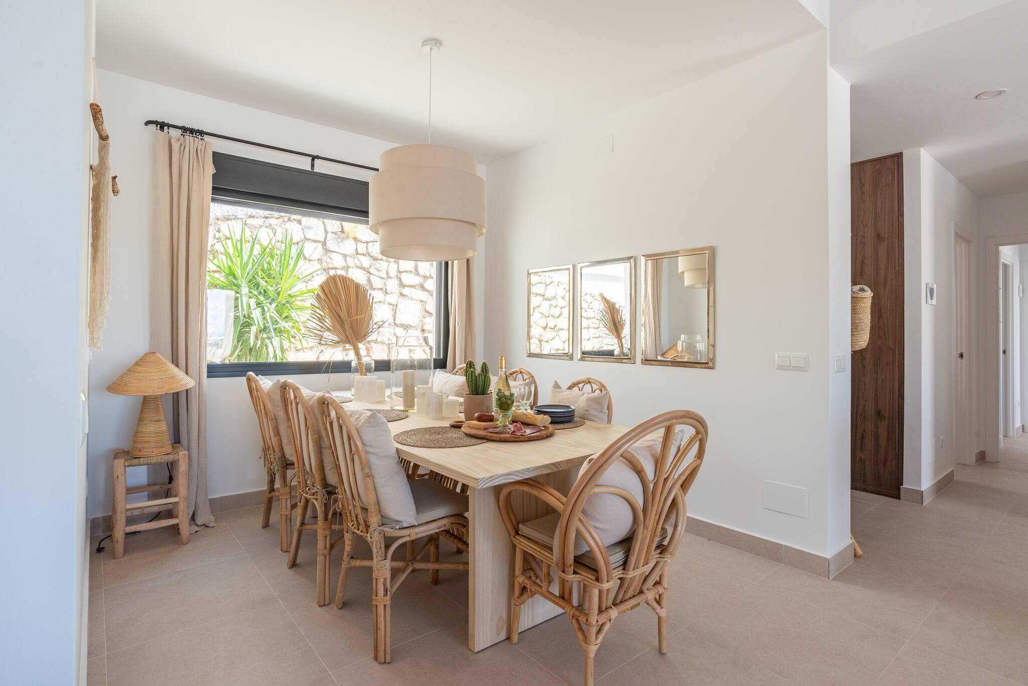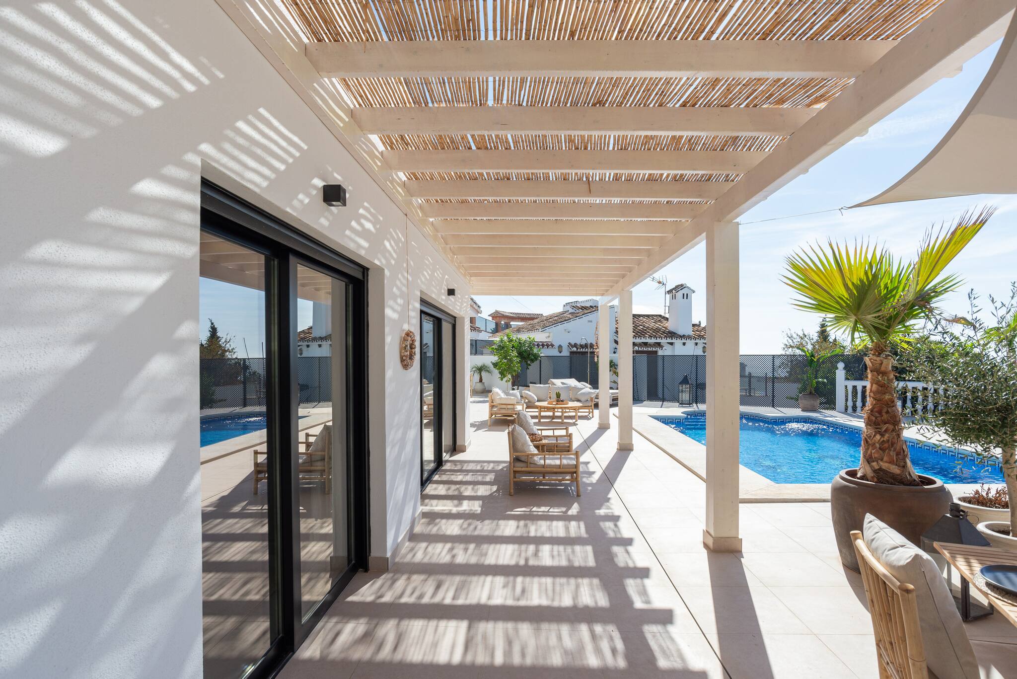 Der er store vinduespartier i boligen som du kan åbne og træde direkte ud på terrassen og nyde solen. Der er også elektriske blinds i hele villaen så du kan lukke af for solen. Alle rum har Aircon med kold og varm luft.