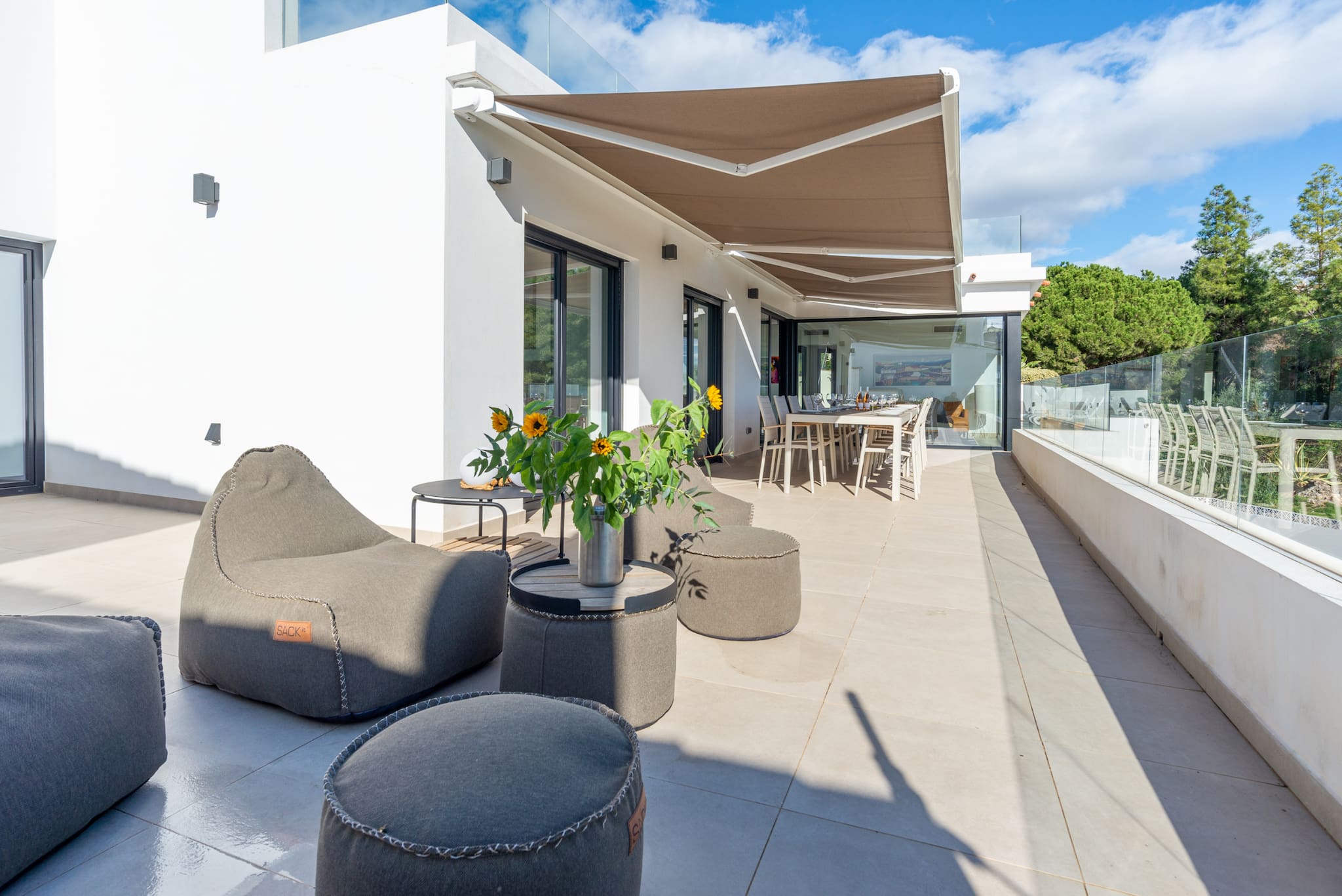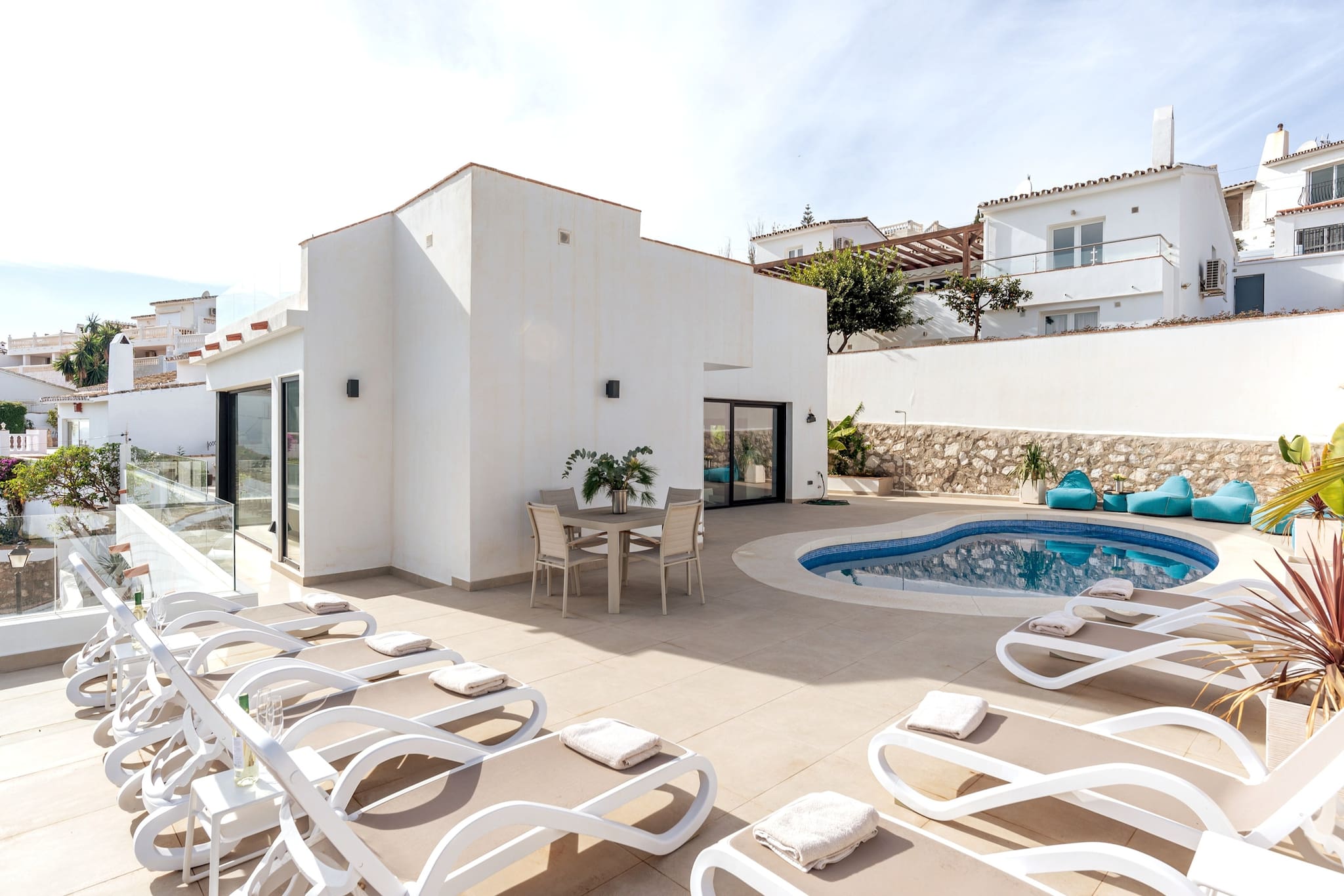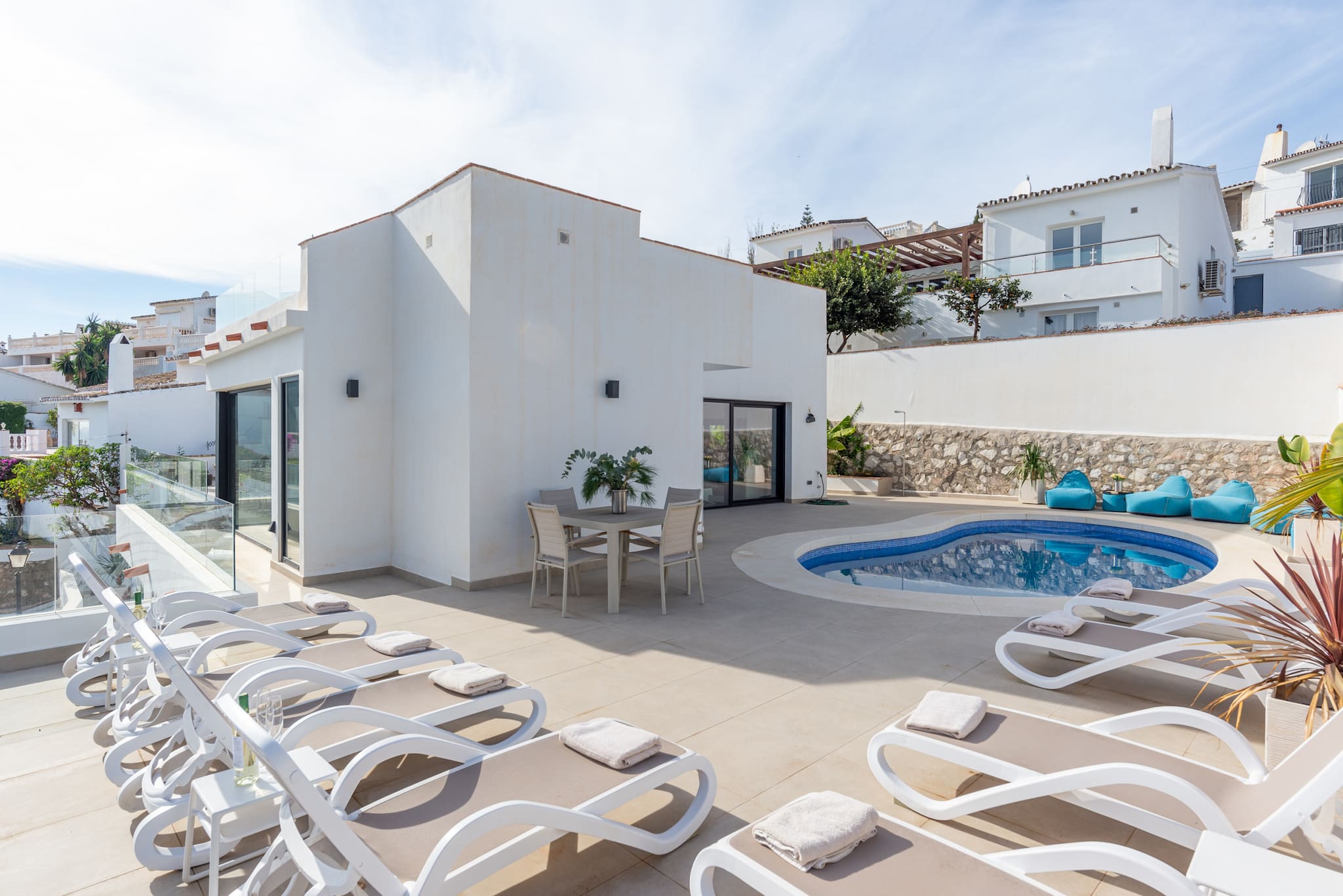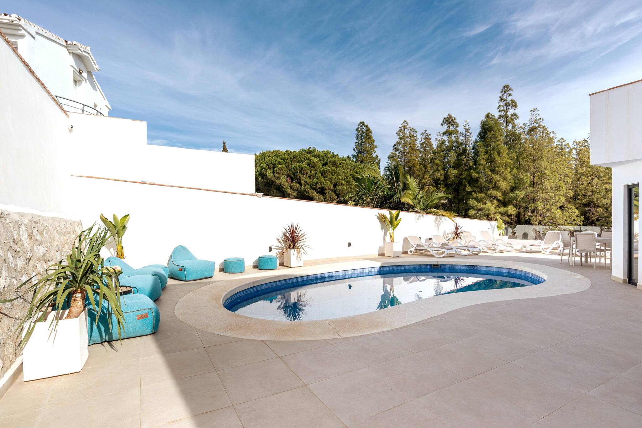 I har adgang til hele boligen, terrasserne og den private pool.