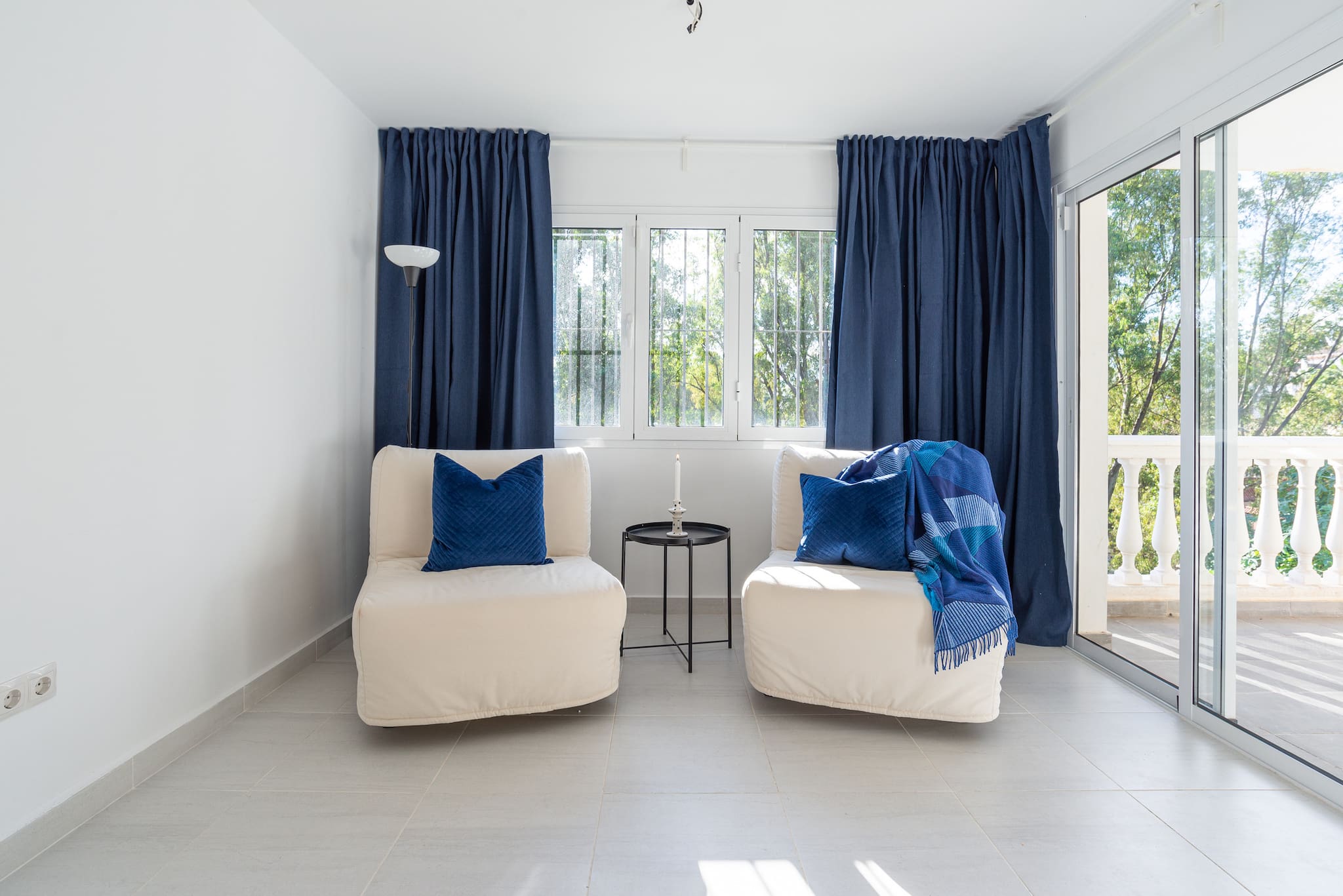 Et roligt område med fastboende i de omkringliggende villaer. Den nærmest strand ligger 10 minutters gang fra boligen og 10 minutters gang til nærmeste supermarked og restauranter. La Cala by som er den nærmeste by har alt, restauranter, barer, supermarkeder osv. Det vil tage omkring 5 minutter at køre til La Cala.