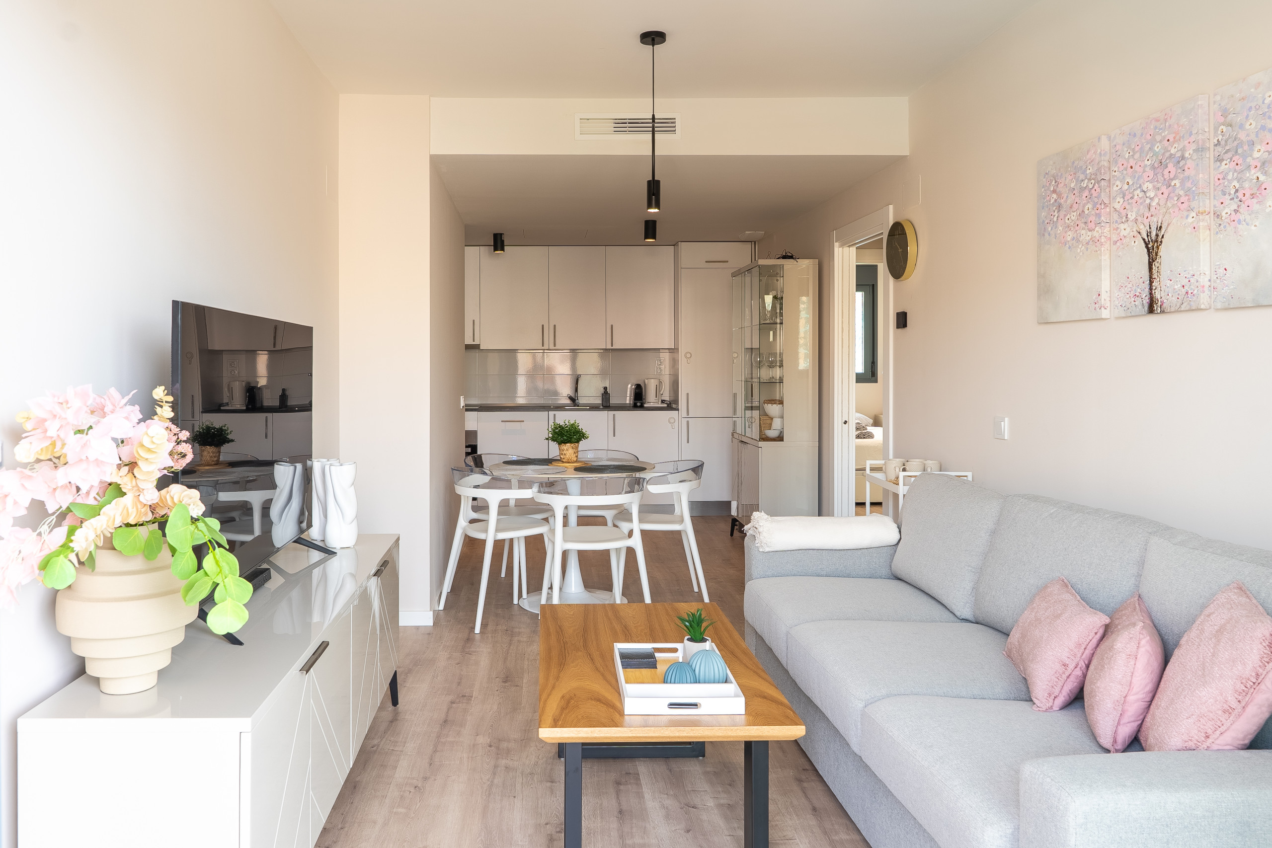 This newly built 3-bedroom apartment is located in the vibrant area of Las Lagunas, Mijas. Everything you need is just around the corner – supermarkets, shops, restaurants, and bars. Fuengirola beach is only a 20-minute walk away, making it perfect for sun and sand lovers.
