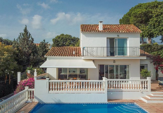 Beautiful villa renovated in Scandinavian style. 3 bedrooms and 3 baths. Lovely garden with many terraces and private pool. Great views of Fuengirola and the Mediterranean Sea.