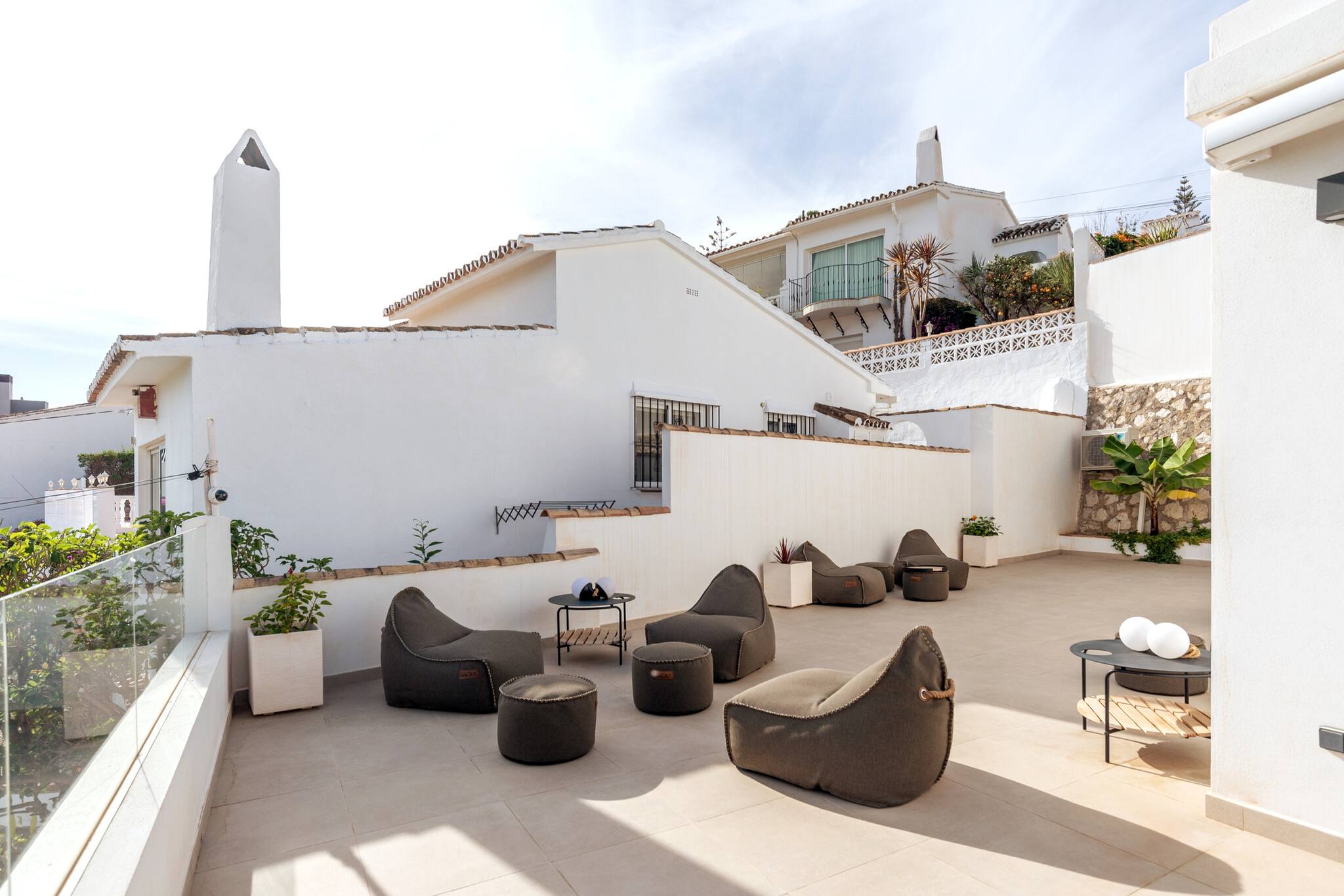 Make yourself at home at Casa Media Luna near Mijas Pueblo. This modern villa has a private pool, beautiful views, and two extra apartments — perfect for family trips or groups. Enjoy the jacuzzi, gym, and sunny outdoor living while exploring one of Andalucía’s most charming villages.
